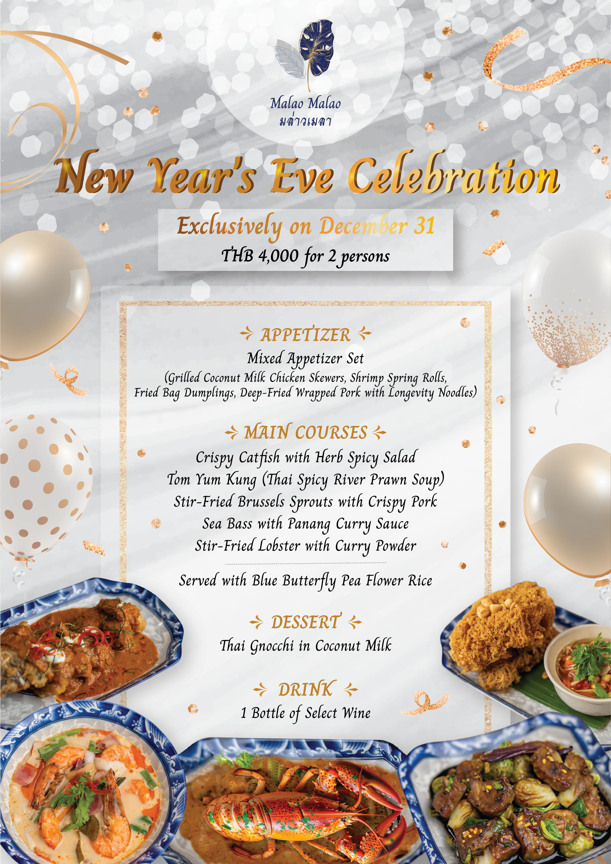 Celebrate the magic of the season from December 22 to January 3 with festive decorations and delightful music, all while enjoying authentic Thai cuisine.